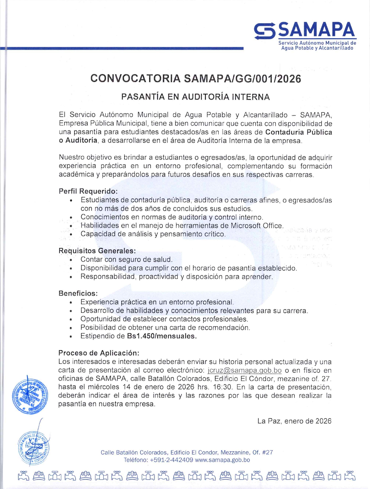 - Un (1) Representante del Gobierno Autónomo Municipal de La Paz.